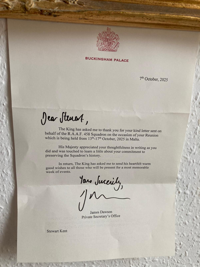 The Letters of Commendation that were received for our 80th Anniversary of the end of WWII Reunion and the vital mission of 458 Squadron, come from Australia's Governor General, Buckingham Palace, Canada's Prime Minister, UK Prime Minister, Chief of the RAAF, Marshal of the RAF, Australia's Department of Veterans Affairs Minister, Alberta Governor, British Columbia Governor, Vancouver Mayor, Manitoba Governor, Newfoundland and Labrador Governor, Nova Scotia Governor, Prince Edward Island Governor, Quebec Governor, Saskatchewan Governor and Sir Alec Shelbrooke.