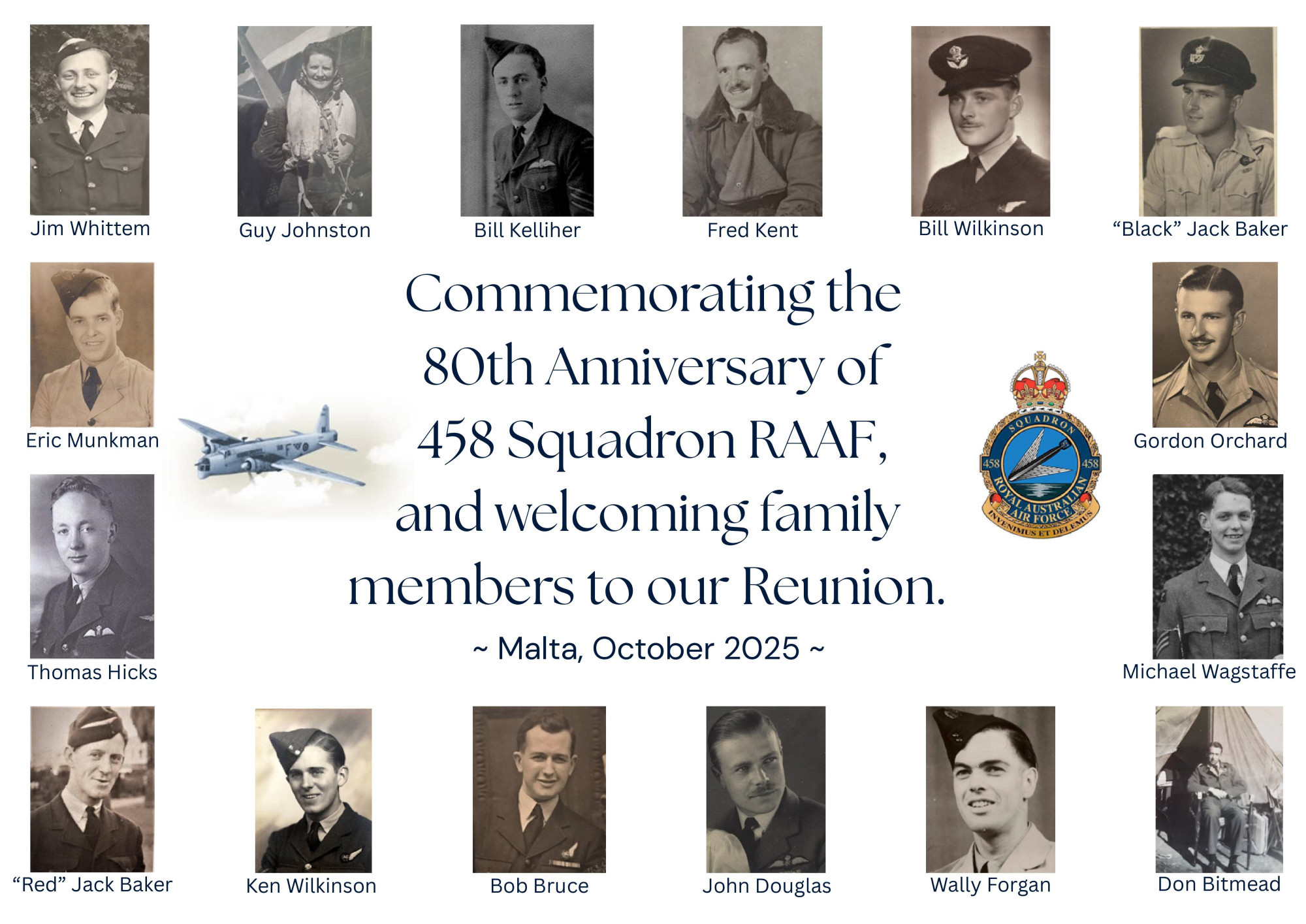 During the week of the 13th-17th October, 2025, the 458 Squadron Association held the 80th Anniversary since the end of World War 2 Reunion. We were thrilled to have the President's message from Charles Humbles and also send best wishes and good health to both Charles and Bill Wake, our two Squadron Presidents. We wish you were here, thank you for all you have done and for all you are doing as you continue to fly the 458 flag! We also received seventeen Letters commending 458 SQN from dignitaries around the globe, including Canada, the UK and Australia.